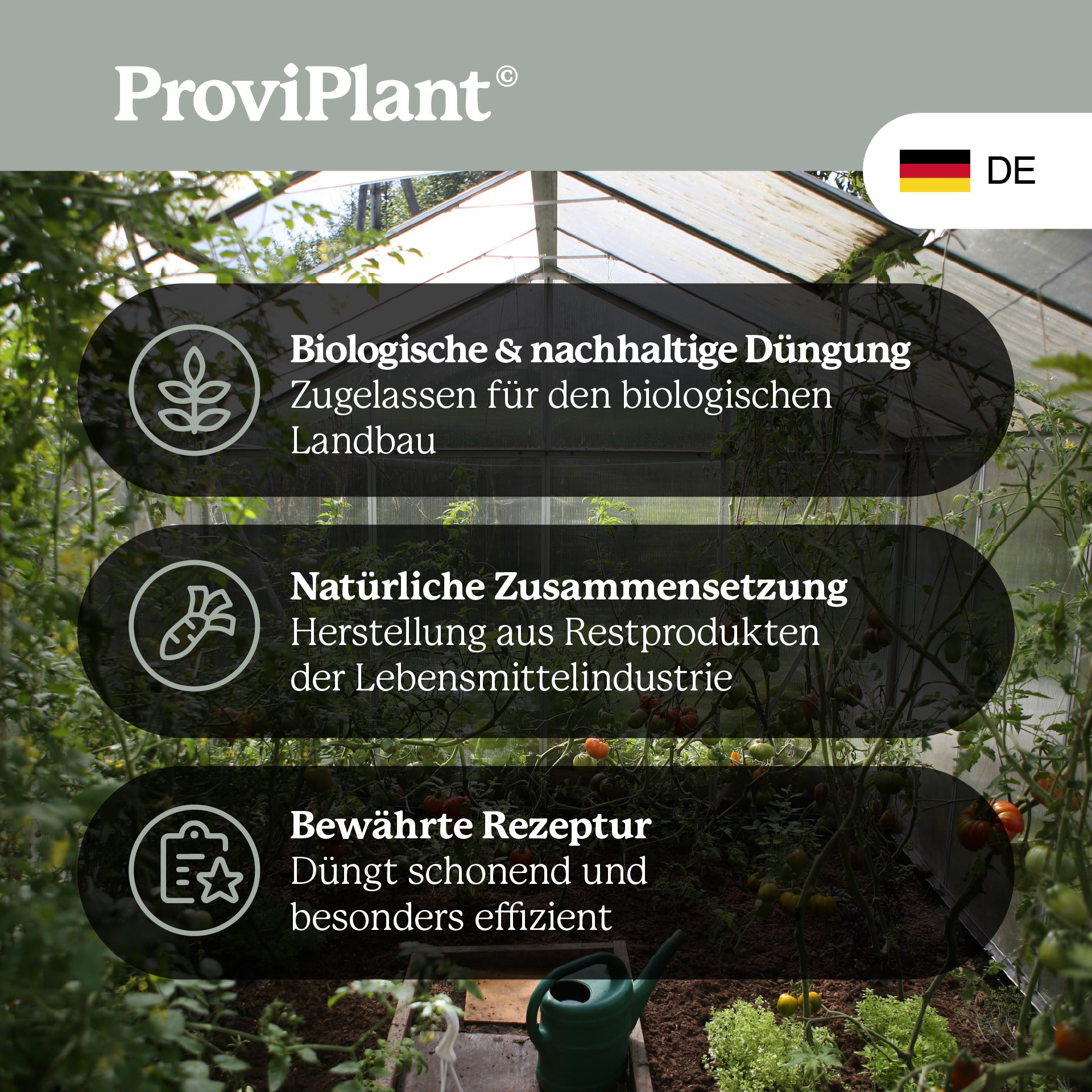 | Zusammensetzung | 4,0 % Gesamtstickstoff (N) | 3,9 % organischer Stickstoff (Norg) pflanzlichen Ursprungs | 0,1 % Ammoniumstickstoff | 6,0 % Gesamtkaliumoxid (K2O) | 27 % organischer Kohlenstoff | 65 % Trockenmasse |